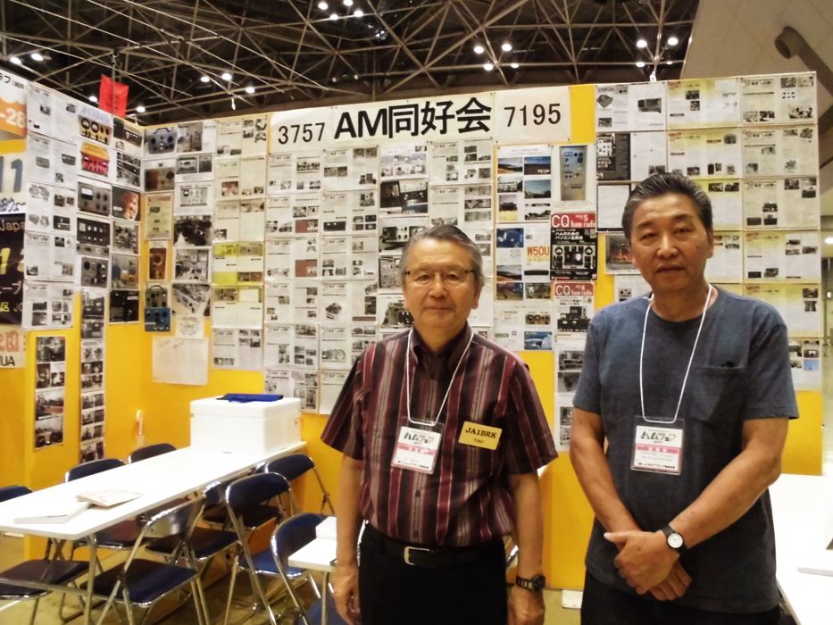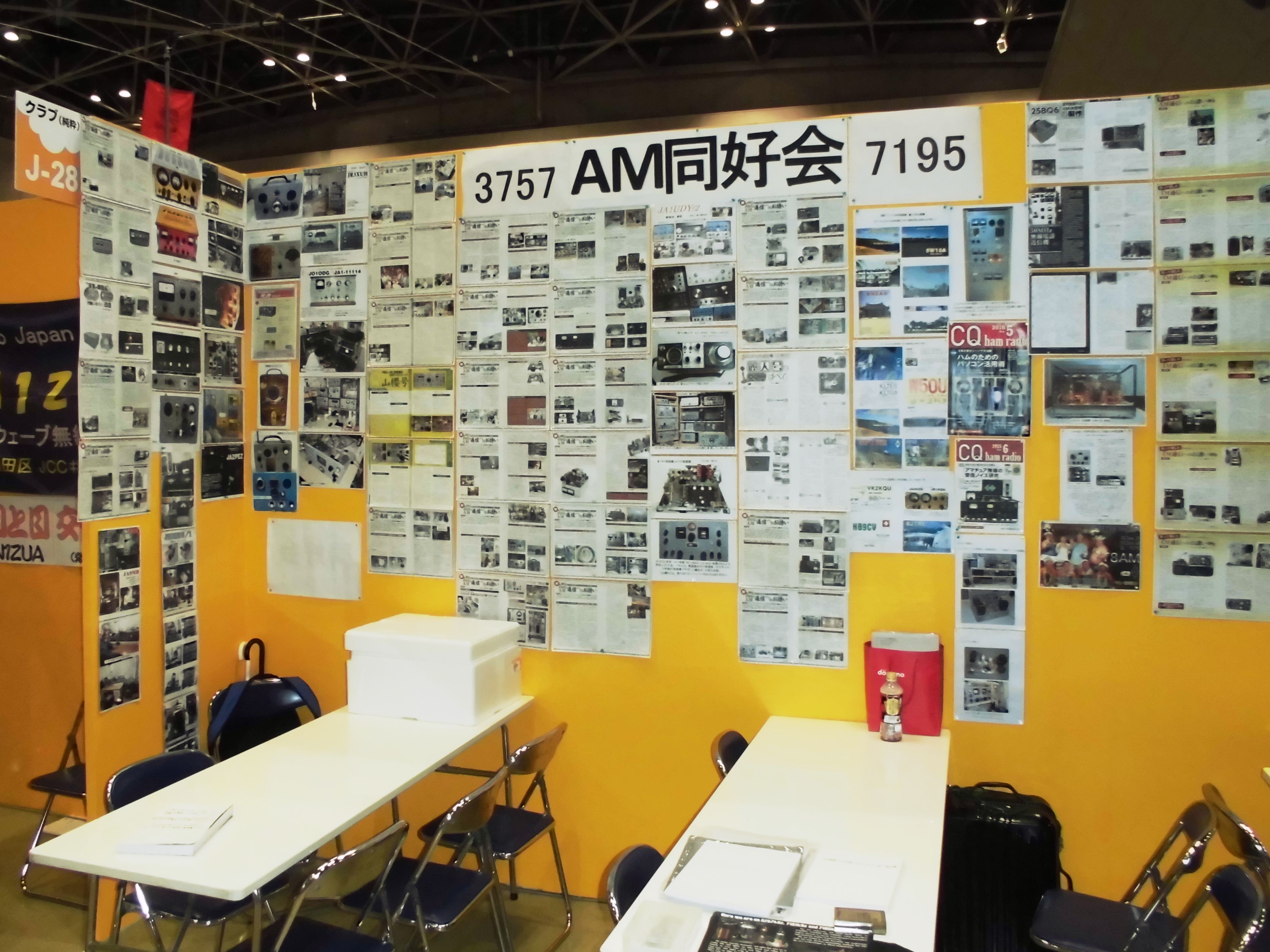 AM同好会のブースには、設営総監督 JA9FIO 中嶋さんを中心に、 1 年で確実に 12 枚増える CQ 誌に連載中のカラーページを、例年のごとくブース壁一面に貼りだす事にし、古い記事はテーブルの上に並べて、手に持ってじっくり眺められるようにしました。