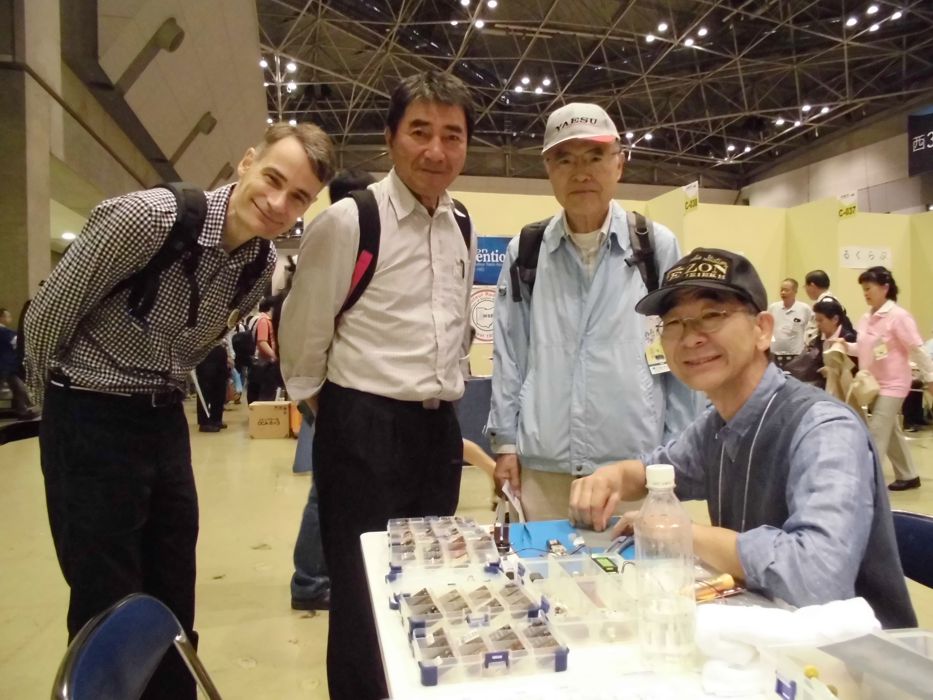 初日、もうすっかり恒例となった JE1EKH 小野里さんによる FT243 水晶研磨の世界の実演は、始まりと同時に黒山の人だかり。夕方までず~っと人が途切れることなく、まさしく日本のわびさびの世界を見せていただきました。外国人さんの見学者も多かったですよ~。 ![]() 英国からの方も見学、水晶研磨 小野里さんに、いやはやもう水晶研磨はライフワークですね~と声かけましたら、お姉さんに遊んでもらえず眠れない夜は、シュッシュッと研磨すると心が澄み渡り、世俗世界から解き放たれるそうです。