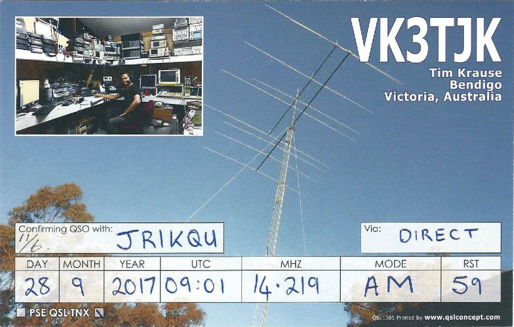 今年9/28に14MHzAMで交信したTIMさんよりSSB/AM 2枚カードきました。