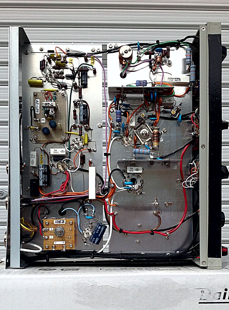 すでにTX-88Aで同様のやり方で使ってますが非常に操作性が良く、SSBからAMへの切り替えが、なんちゃって方式と同じ位の手軽さでほぼ瞬時に切り替え使用出来ます。 7195のAMだけなら水晶発振でいいんですが海外局とSSBで交信していてコンディションがいいのでAMでやりませんか?とリクエストする場合は速やかに切り替えが必要でなんちゃって方式が一番簡単ですね。 だけど真空管式AM送信機でやるにはまずどこの周波数でも出れる事が必須条件、それには現在お使いのトランシーバーをVFOとして使うのが合理的であります。 今、聞いてるそのままの周波数で送信出来ます。当たり前です。(その昔AM電波が飛び交っていた頃はVFOだと動いてどうしようもなかったですが、時代は流れ今のトランシーバーはまず周波数動きません。それに当たり前に慣れてしまってますから) 私は一台目のオールバンドAM送信機 麗人号を作ったのは、28MHzで海外局とAMで交信したかったからです。 2011年11月の朝29.020MHzでCQAMを出してアメリカの局から59のリポートをもらったのが始まりですがあっという間に、サイクル24は終焉を迎えてしまいました。 麗人号の弱点はSSBからAMにするのにトランシーバー付属のATUで同調取り直すため3~5秒かかりました。 今回の凌雲号はその点最速で、ATUのボタン押して外すだけです。 いま、皆さんがAM無線機を作って楽しんでられるのは、少年時代に消化不良のまま、気がつけばSSBの世の中になってしまい、昔やり残した真空管式送信機を大人になった今もう一度おさらいしてみたい方が多いからですよね。 今回たまたまうまいやり方が見つかり、日本一レベルの低い簡易型送信機が誕生間近でありますが、実用性は200%凄いぞ! なんたって送信出力10Wに対して変調器は20Wですから、馬鹿でかい音がします。了解度が極めてよしです。 さらに、リニア付加して、πマッチングの調整で50~200W 可変自在です。 これで、サイクル25でもうひと遊び楽しめる準備ができたというものです。 やるなら28/24/21MHz、50MHzでは海外局の入感頻度が短いし、JT65では皆さん巨大リニアでお出まし、しんどいその点28MHzなら10Wでも地球の裏側まで飛びます。 ひょっとしたらサイクル25でAMDXCCできるかもしれない。 凌雲号うまく動作しましたら、ずっとAM通信のホームページでお世話になってます、JP7CZE川辺さんに進呈するつもりでおります。 (あれま!? 聞いてませんでしたぞ!嬉しいです.アリガト!!! by HP管理人)