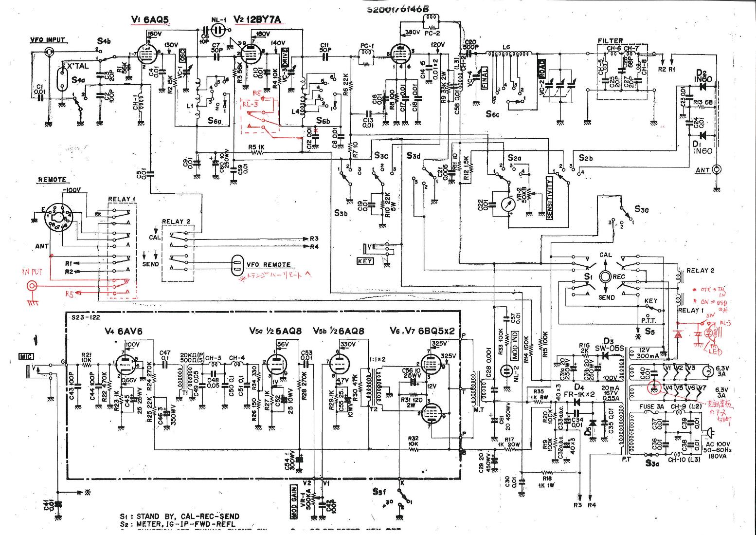 配線図はJL1PSW 森谷さんにパソコンで綺麗に清書してもらいました。手書きよりかなり見易くしてもらってあります。