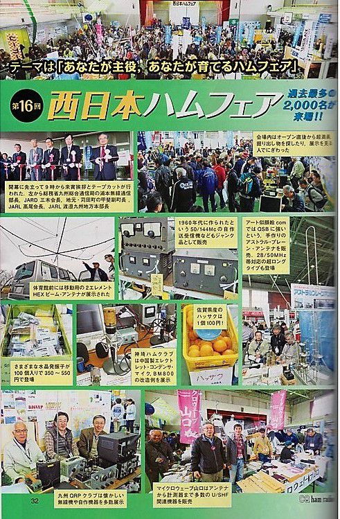 九州QRPのブースがCQ誌32ページ左下に掲載されました ![]() 写真右は、JF6DEA 木下氏、50MHzビーコン(JA6YBR)を1985年に宮崎大学に立上げ、現在まで運営管理をしています。ビーコンに関する資料を展示しました。 写真中は、JP6NWR 光安氏、QRP部門 ピコ6をはじめミズホ通信のQRPのリグ、その他自作リグ、8J6VLPで交信したDXからのQSLカード等を展示しました。今年もまた4月26日~7月31日まで、QRPデー特別記念局8J6VLPを開設します。AMは1、5Wの電力で運用します。弱い電波にお付き合い下さいよろしくお願いします。 写真左は、JA6SZC 川島です。AMリグを展示、上段の黒ケースは、3バンド5W送信機、終段UZ-42、変調器5AQ5P-P,自宅(JA5DIC/6)で運用、下は7MHz、20Wトランシーバー終段S-2001シングル、SG変調、受信部は高1中2、FL50Bのケースに組みました。山小屋(JA6SZC)で運用しています。左にあるのは、調整中の1-V-2,その後ろは0-V-1です。 来店のAM愛好局は、JA6DI JA6CBU JA6EUU JA6FQH JA6FZR?JA6KNQ JA6XTX それに海の向こうからJA5DEH局長でした。店の対応で集合写真を撮るのを忘れましたHi. 日南市 川島 2017/03/31 de JR1KQU 加藤欣一 |