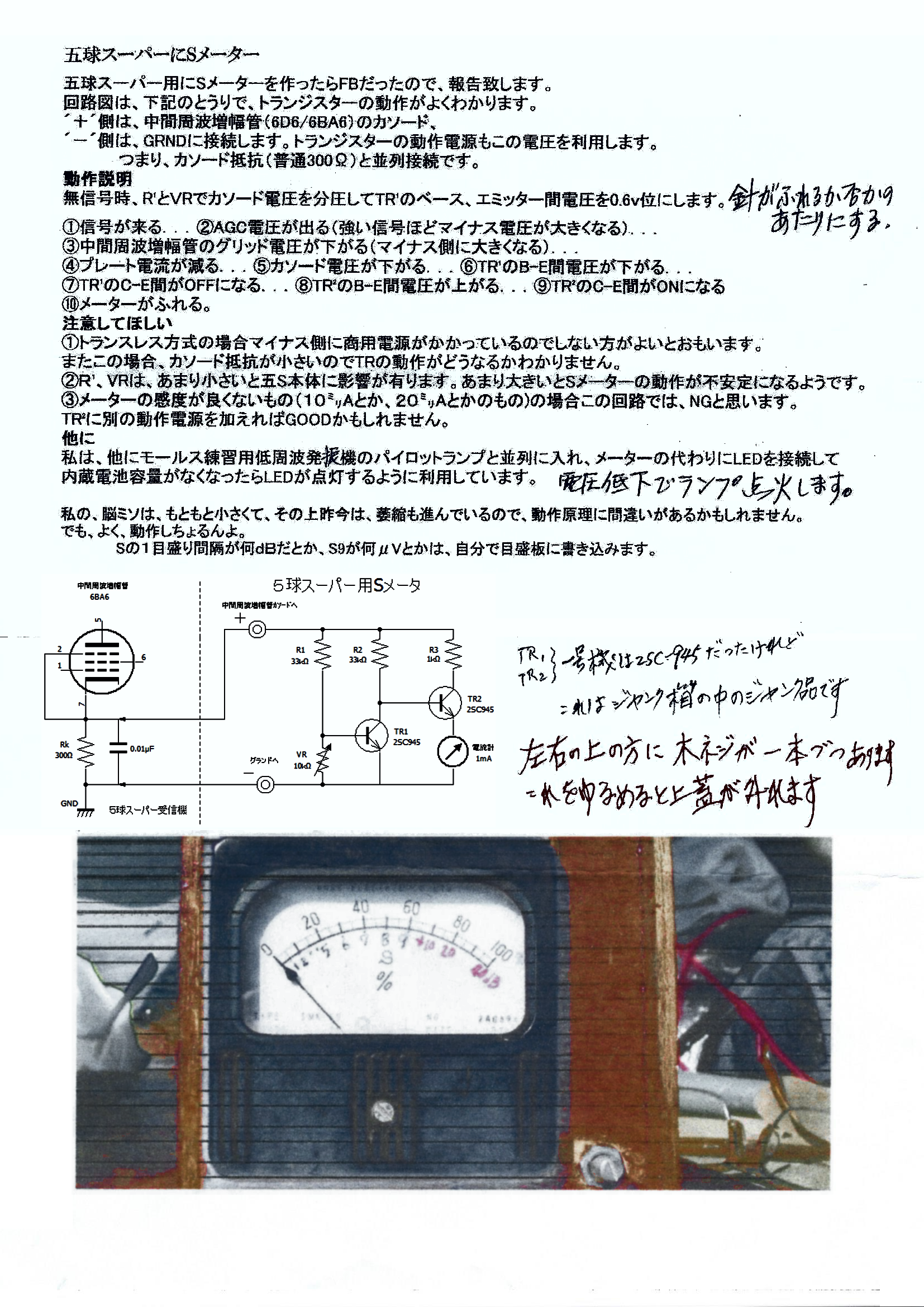 JA4BYO 後根茂生OM から、「5球スーパーにSメータを」のレポートです。