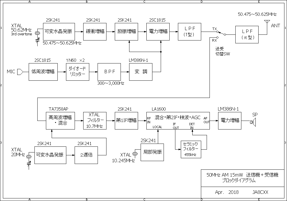 昨年秋から、50MHz AM の QRPp 機を製作しておりましたが、今年 2 月にほぼ完成しました。 ![]() ![]()