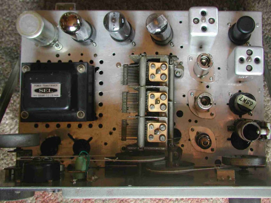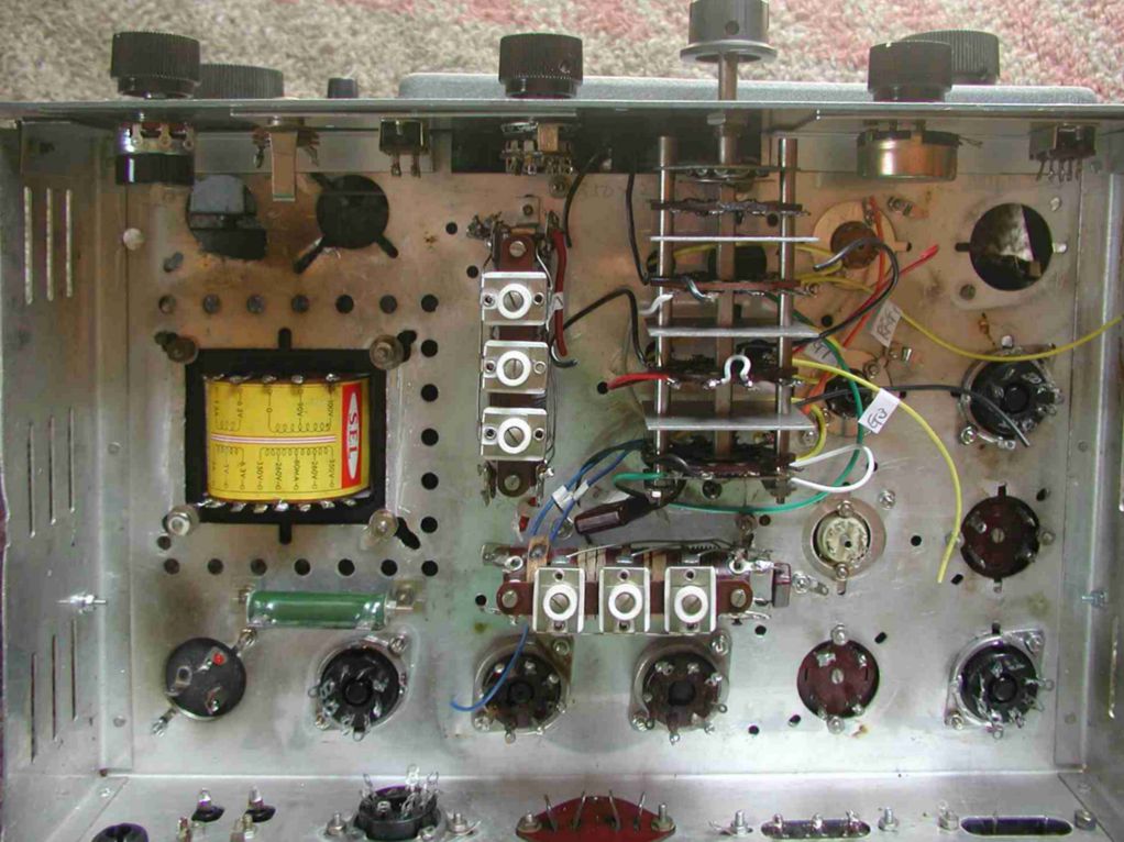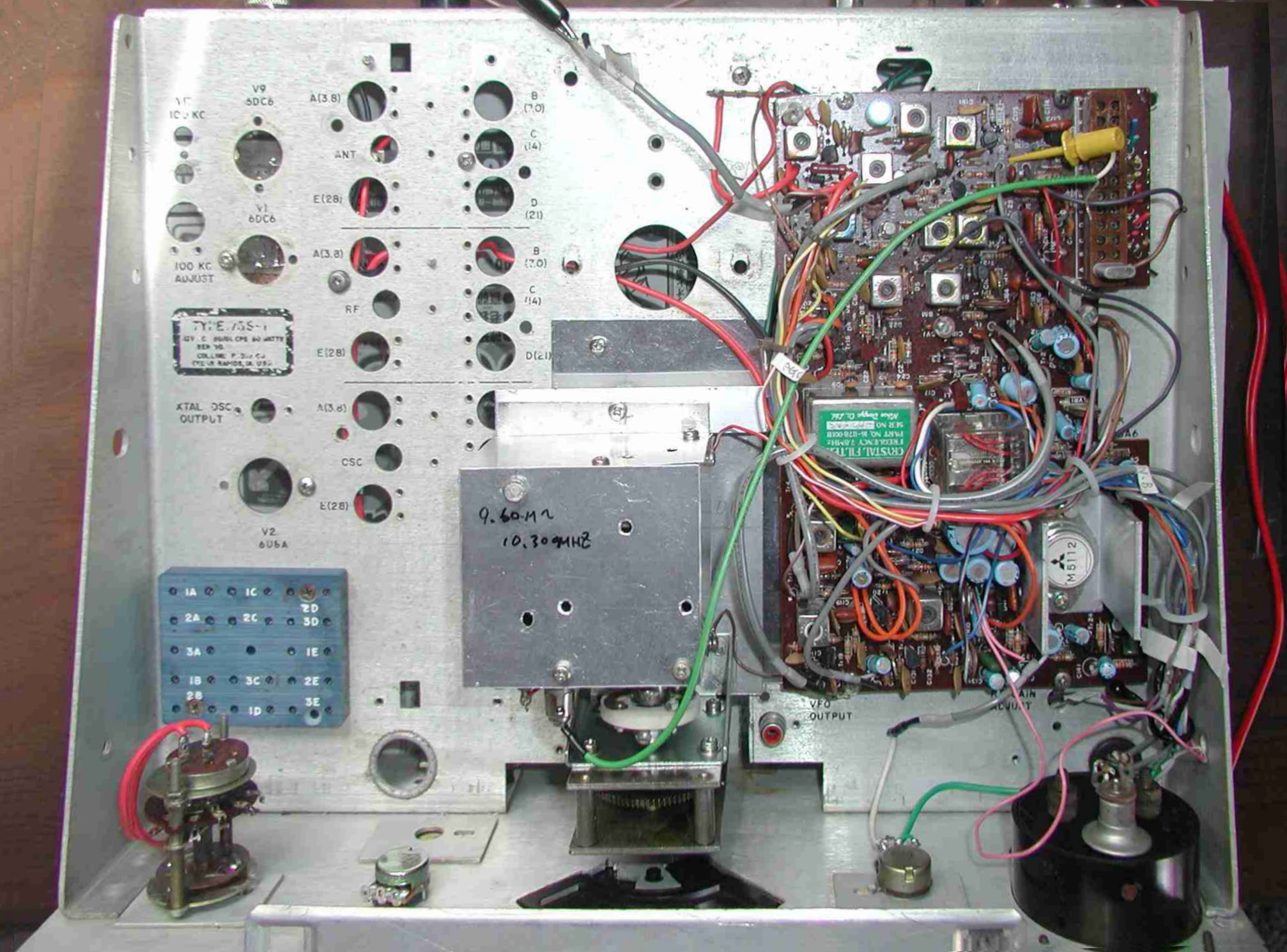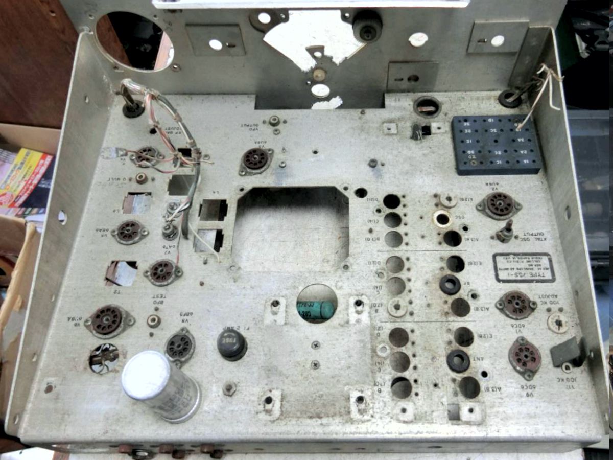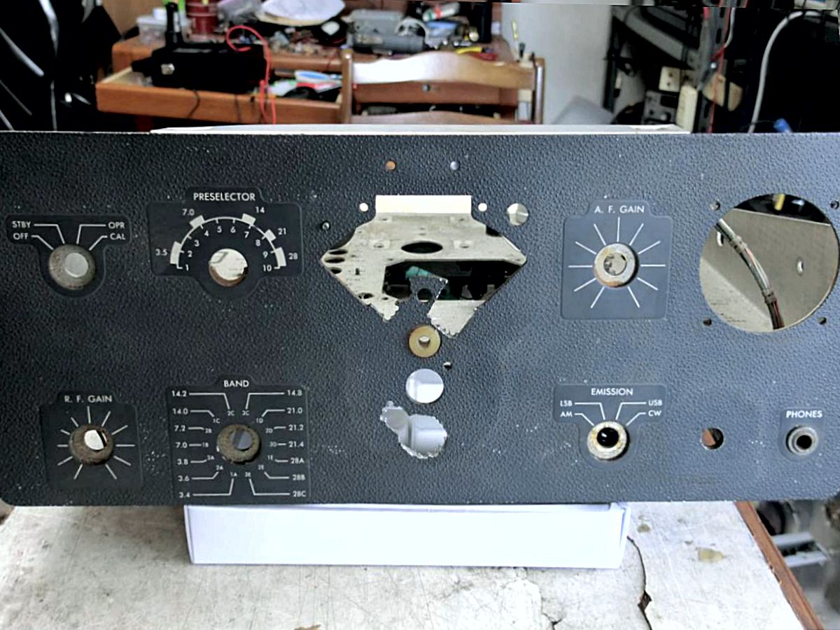 今年オークションで入手したコリンズのボロボロシャーシ(パネル付、ケース無し)75S-1 タイプのジャンク品、3,000 円で落札、残骸部品をすべて取り除きシャーシを洗浄して、ハムフェアの時にコツコツ購入して集めたパーツ類(メーター、ダイヤル、ダイヤルエスカッション、つまみなど)を利用して組み立てに入りました。