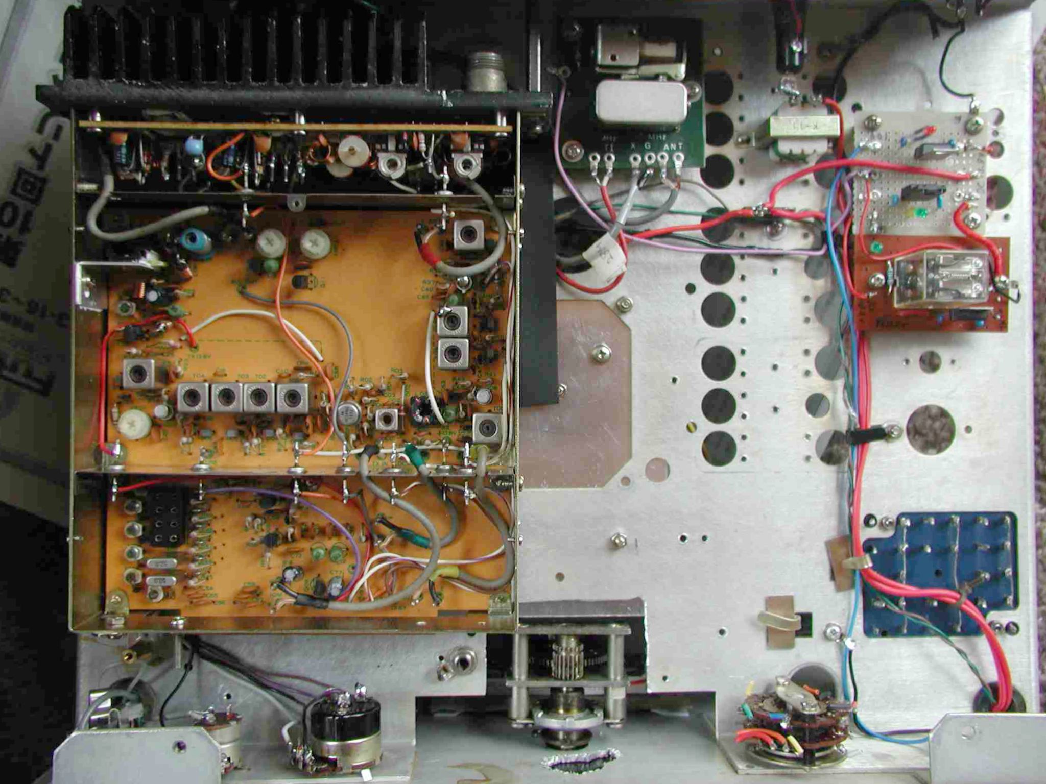 実験しながら少しずつ組み込んでは取りはずしの繰り返しでした。3.5M,3.7Mは7Mコイルにコンデンサーをかまして共振させましたがハイCとなってQが下がり感度は下がってしまいましたが仕方ありません。コイルを追加するだけのスペースがありませんので。配線が込み合わないようリレーで切り替えております。