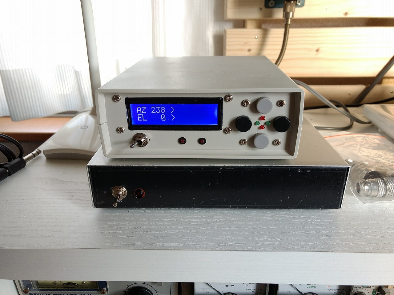 3 枚目の写真、棚の左上に映っているのは、PC とローテータのインターフェースです。
