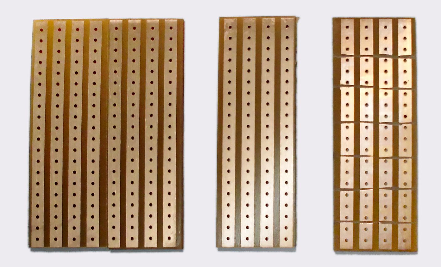 これなら、上下のラインを電圧とアースにして、間は2行でも3行でも自由にできます。