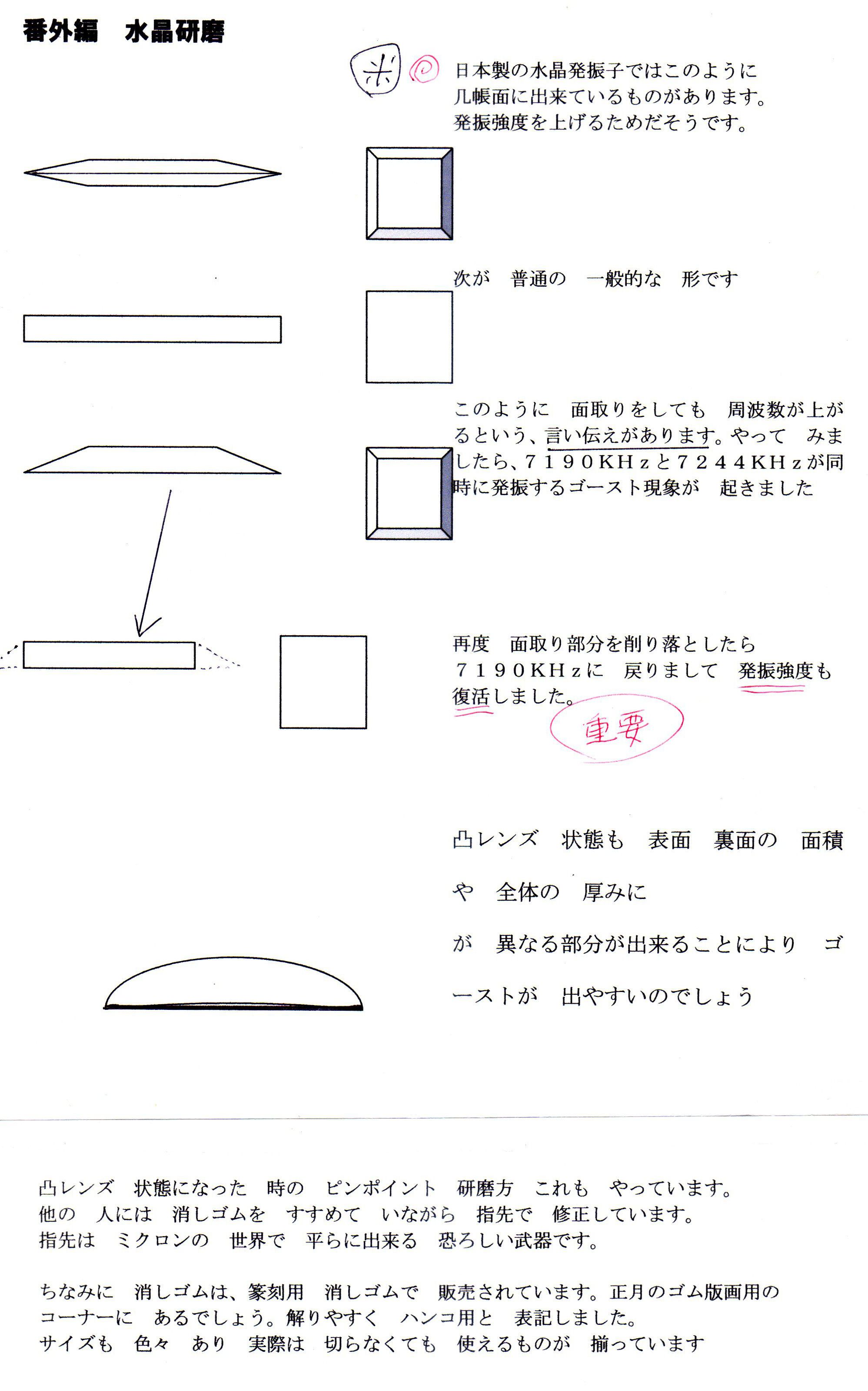 JE1EKH 水晶仙人より水晶研磨に関するリポートを戴いています。